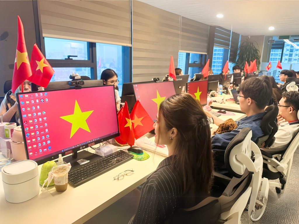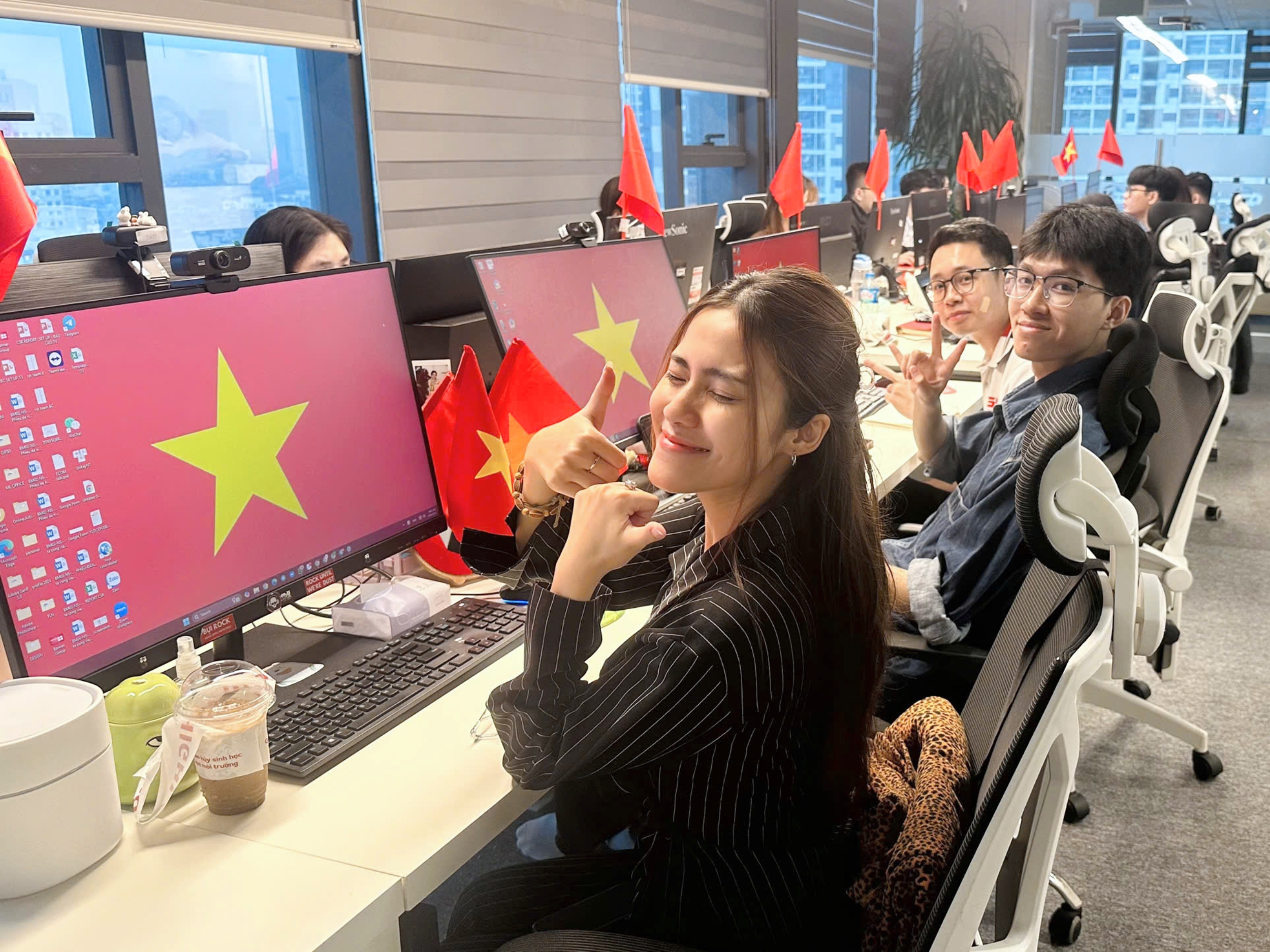 Màn hình máy tính tại các văn phòng đồng loạt thay hình nền cờ Việt Nam – mỗi hình ảnh lá cờ là một lời nhắc nhở về nguồn cội, về những chiến công vĩ đại của cha ông. Từng thao tác làm việc, từng cú click chuột đều như hòa chung nhịp đập với tinh thần dân tộc, lan tỏa niềm tự hào đến mọi trái tim Việt Nam.